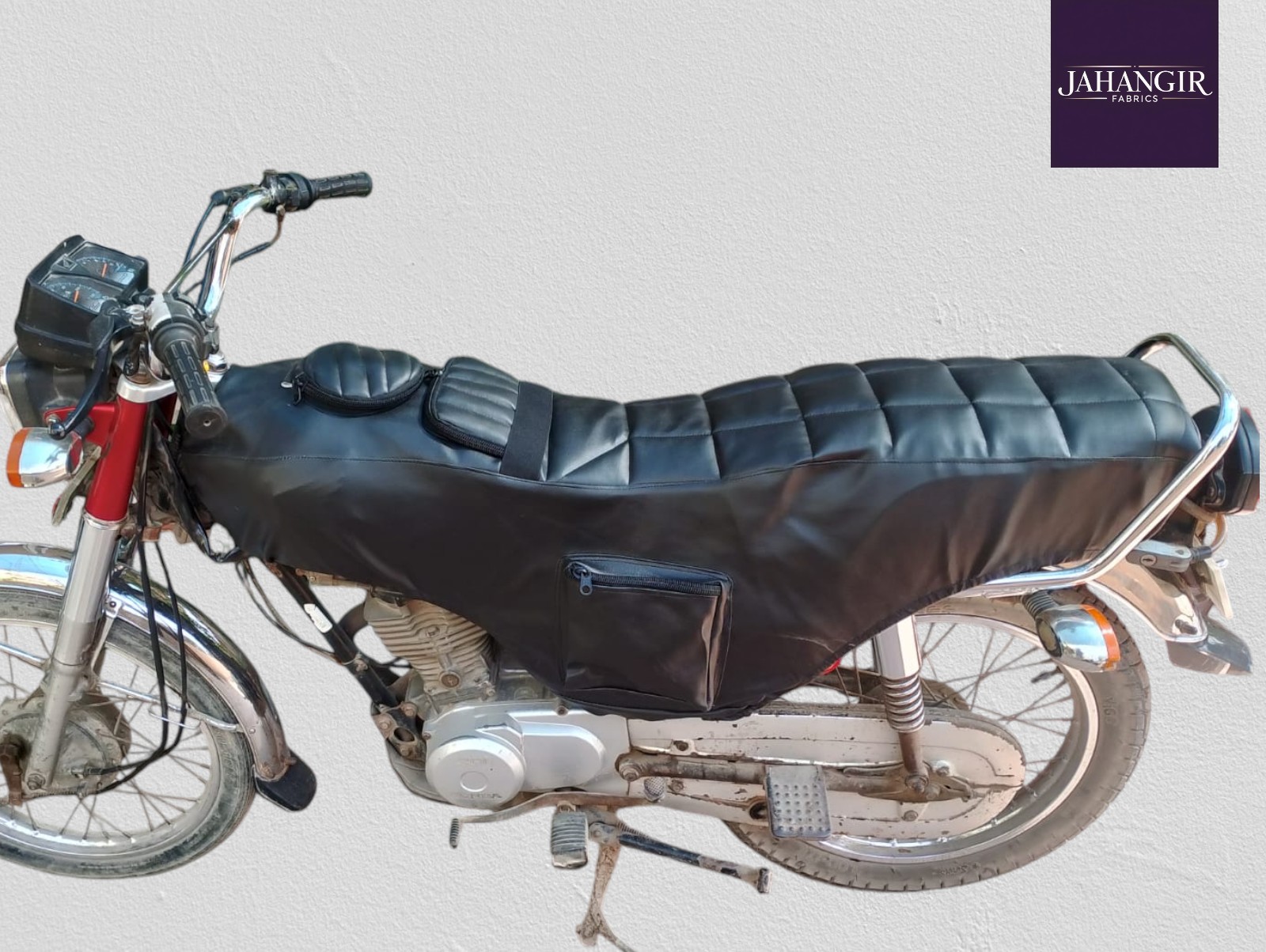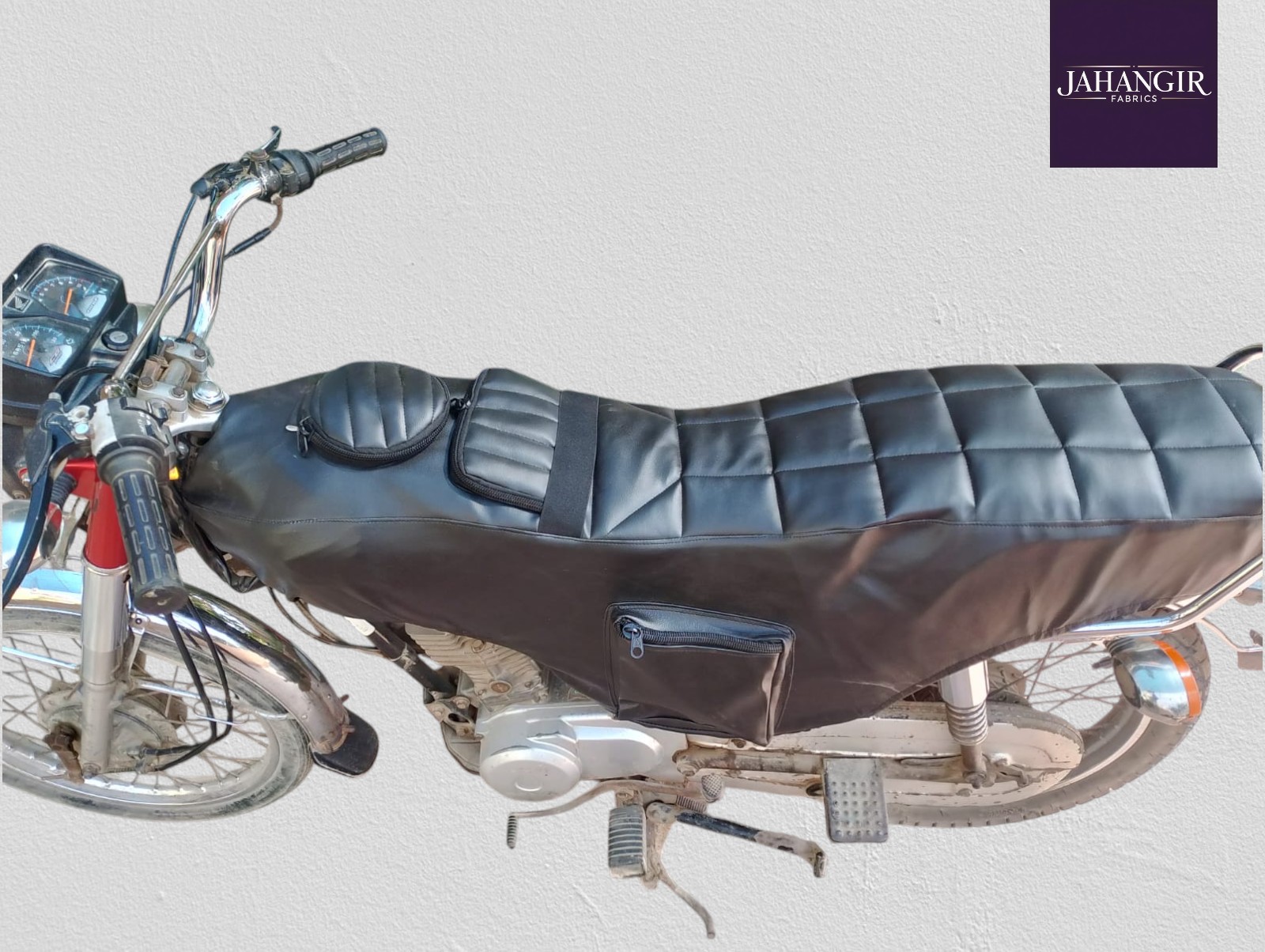 Upgrade your ride with the Ragzin Waterproof Bike Seat Cover, specially crafted for 125cc and 70cc motorcycles. Made from premium Japani Raxine leather, this cover delivers maximum protection against water, dust, and scratches. Its custom-fit ensures your seat stays comfortable, stylish, and shielded from daily wear. Designed by Jahangir Fabrics for durability and elegance, our seat cover gives your bike a modern look while maintaining peak performance—perfect for Pakistan’s weather. Improve your riding experience with a high-quality, long-lasting bike seat cover trusted by riders nationwide.